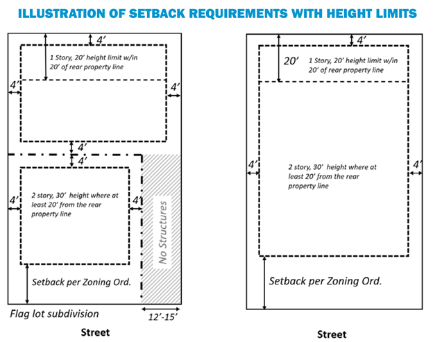 | Minimum Front Setback | 20' | 20' | 30' | 30' | 50' | 15' | 10' | 15' |